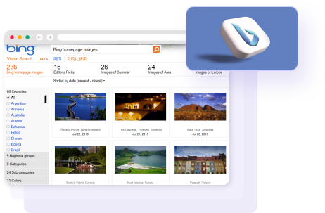 Bing是一款由微軟推出的搜索引擎。它提供類似于其他常見搜索引擎的搜索功能,用于幫助用戶在互聯(lián)網(wǎng)上查找相關信息。Bing搜索引擎提供圖像搜索、視頻搜索、新聞搜索、地圖搜索等多種搜索服務,Bing還具有個性化搜索和搜索歷史功能,使用戶可以輕松管理自己的搜索體驗。